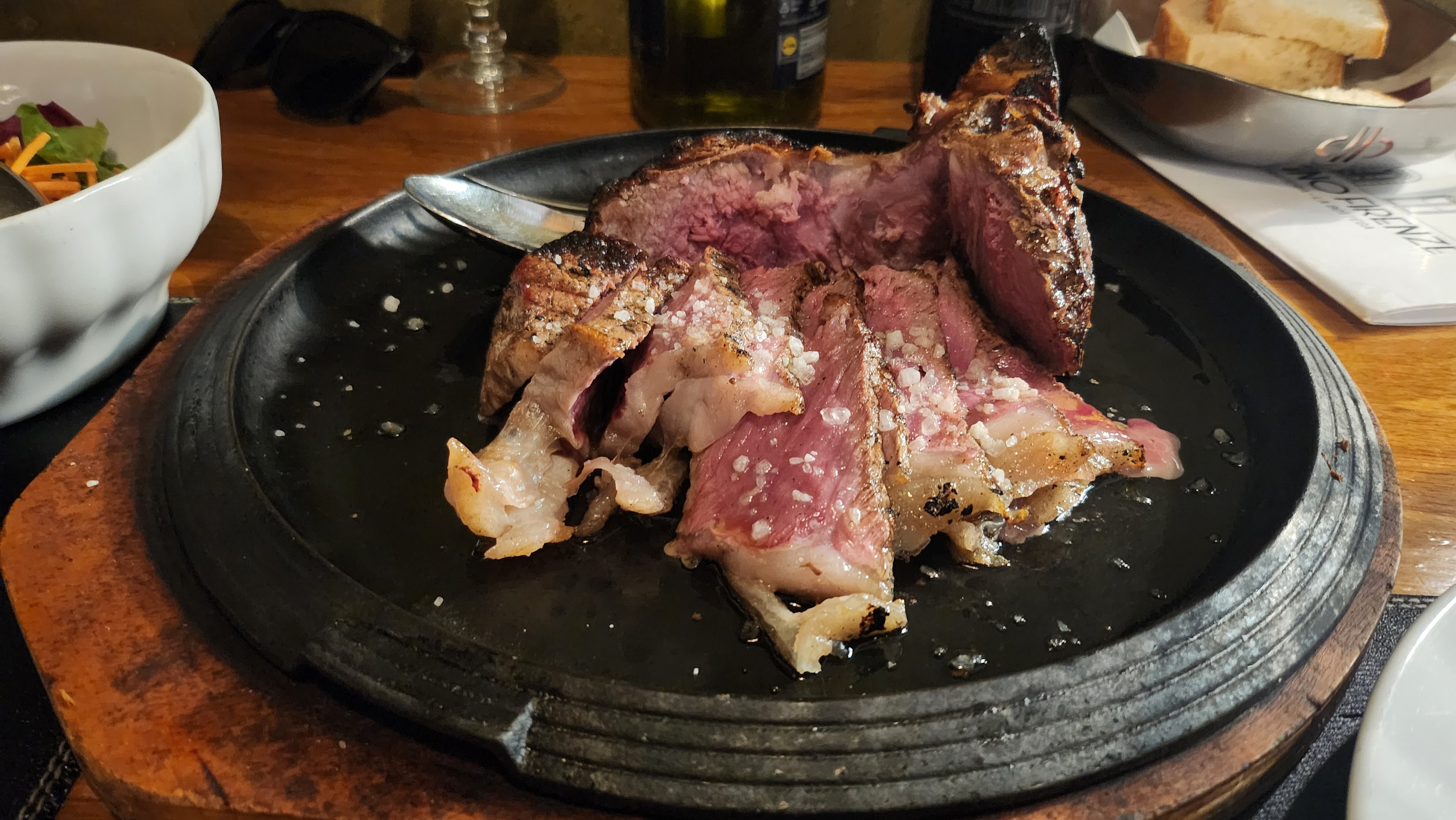 이 곳을 구경한 다음 저 성당의 왼쪽에 있는 골목에 있는 식당에 들어가서 특식으로 스테이크와 파스타를 먹었습니다.