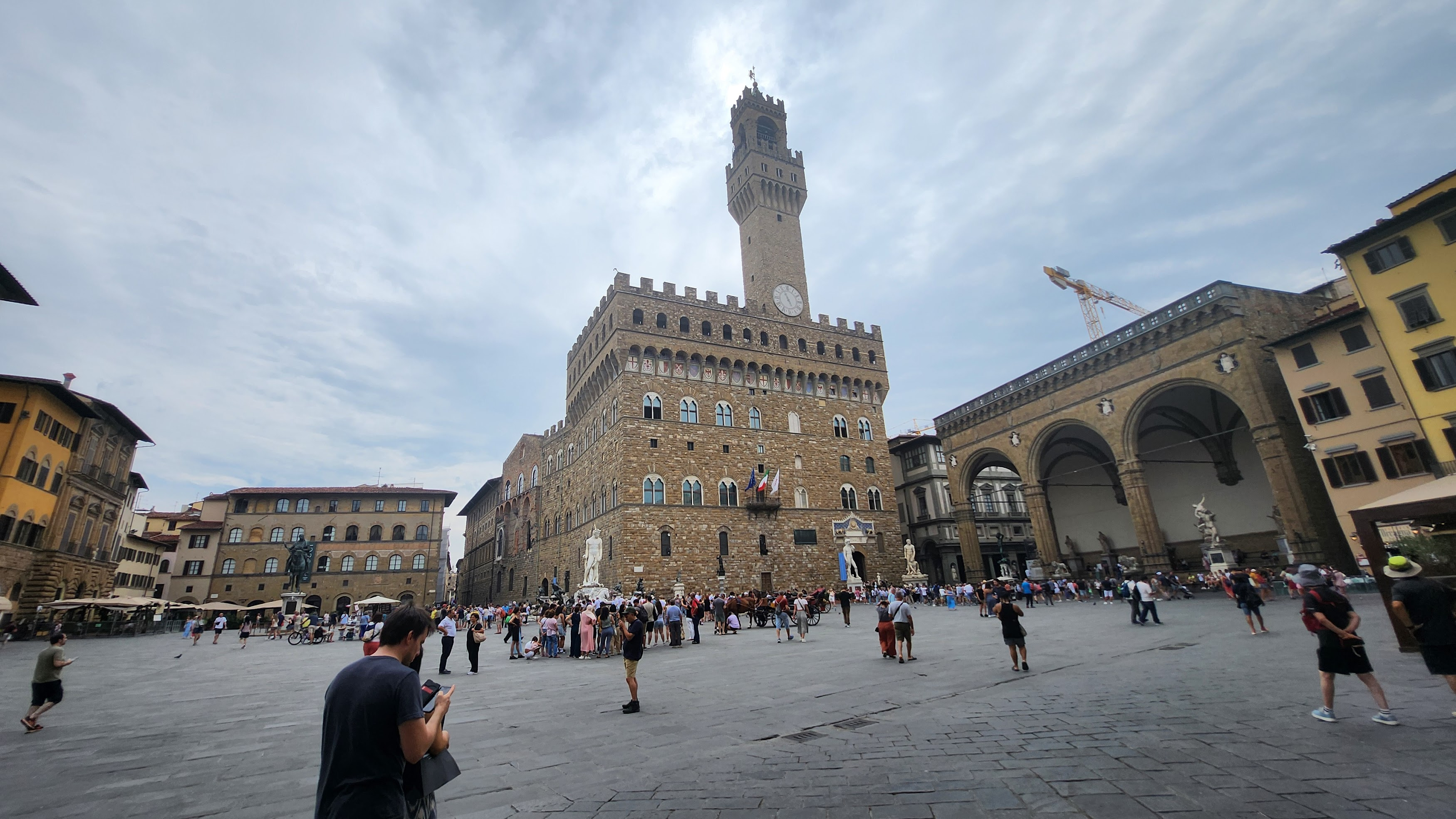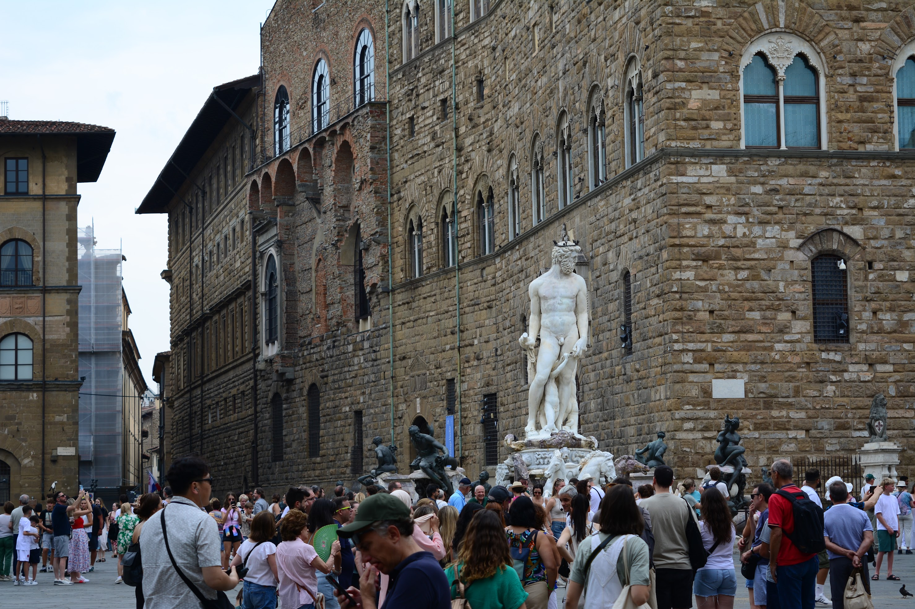 시뇨리아 광장의 저 건물 앞에는 유명한 모습의 석상이 눈에 띕니다.
