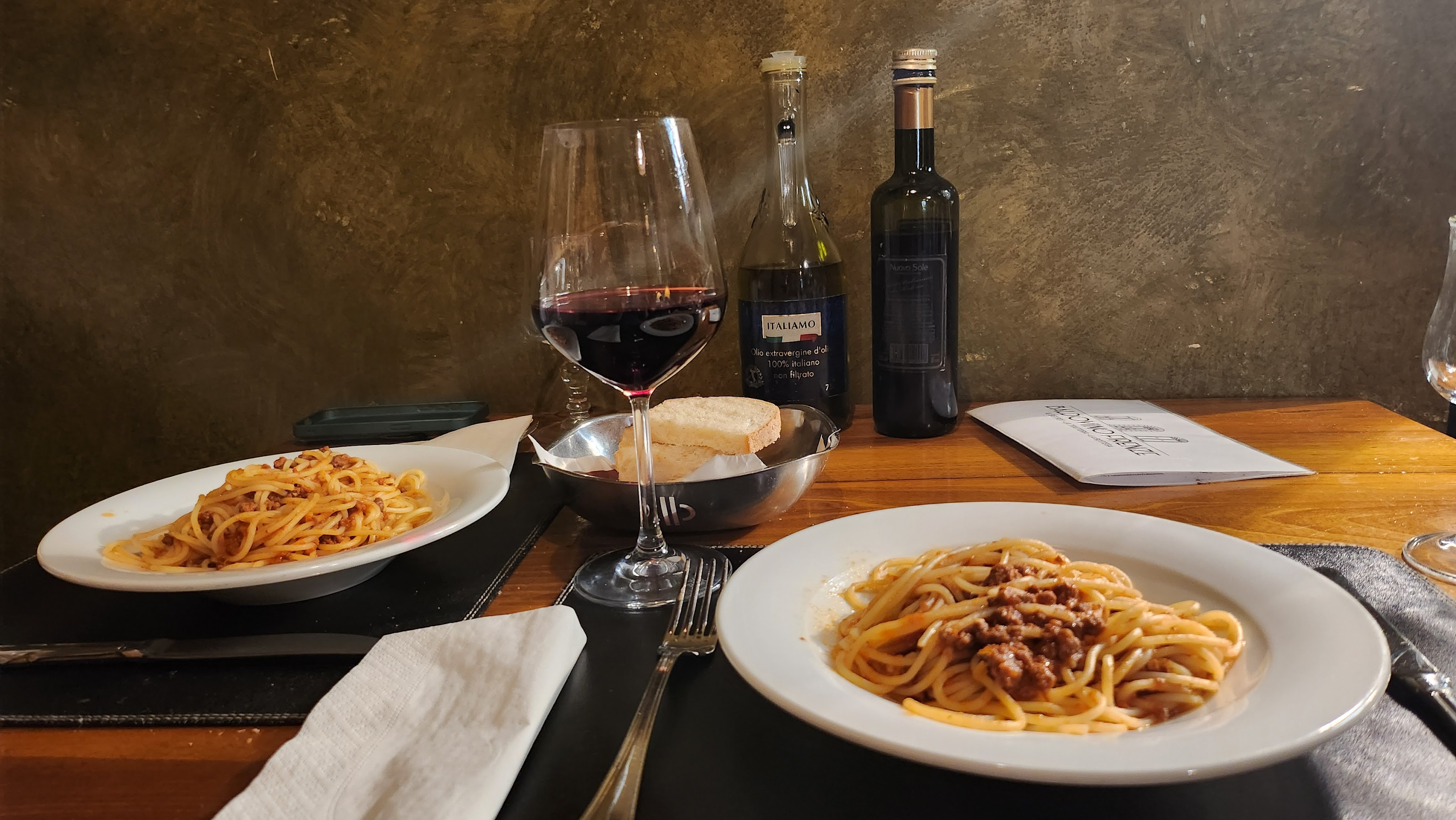 이 곳을 구경한 다음 저 성당의 왼쪽에 있는 골목에 있는 식당에 들어가서 특식으로 스테이크와 파스타를 먹었습니다.