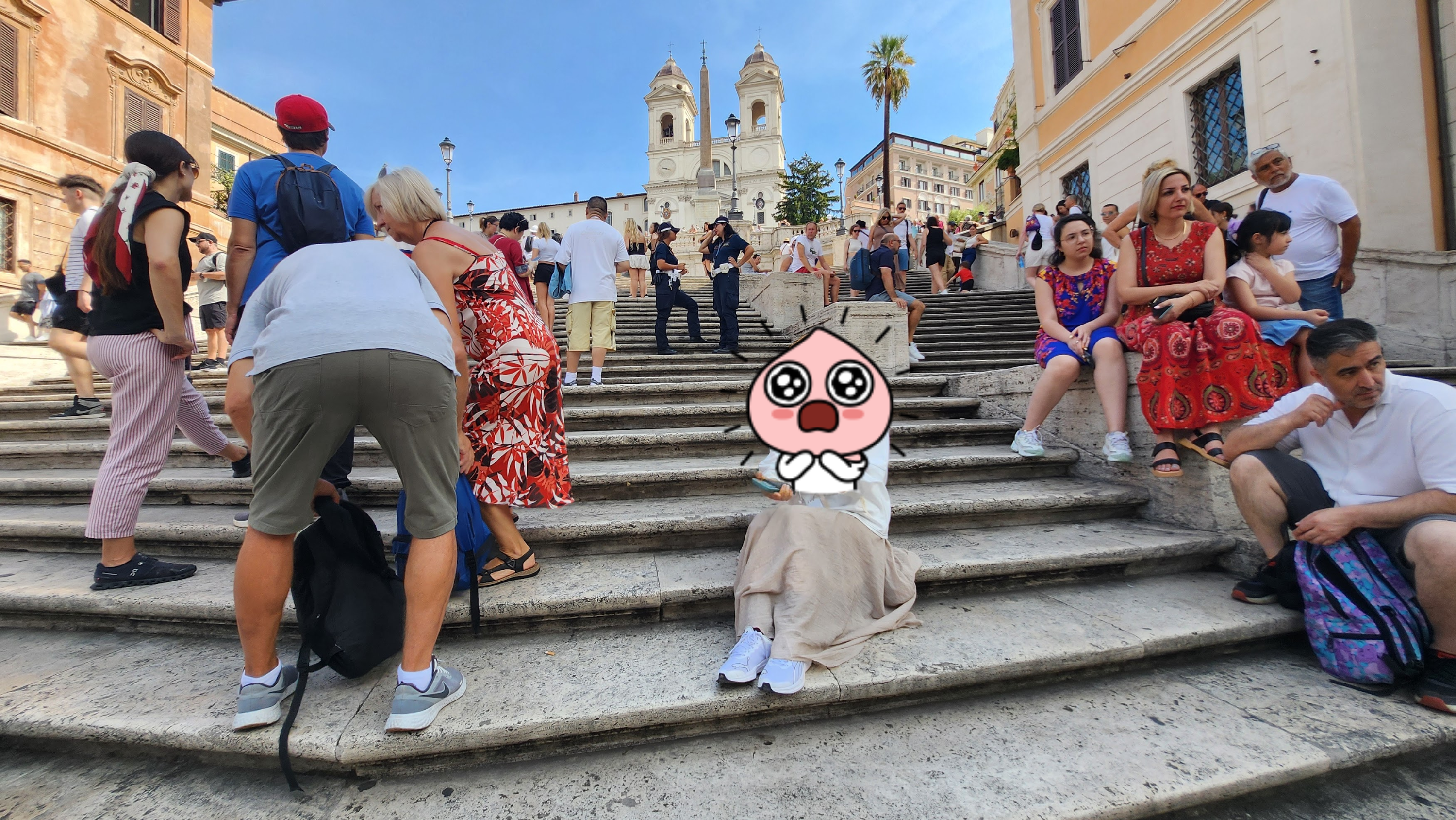 아무 생각 없이 계단에 앉아 사진을 한 장 찍었는데 바로 위에 경찰이 있었네요.
