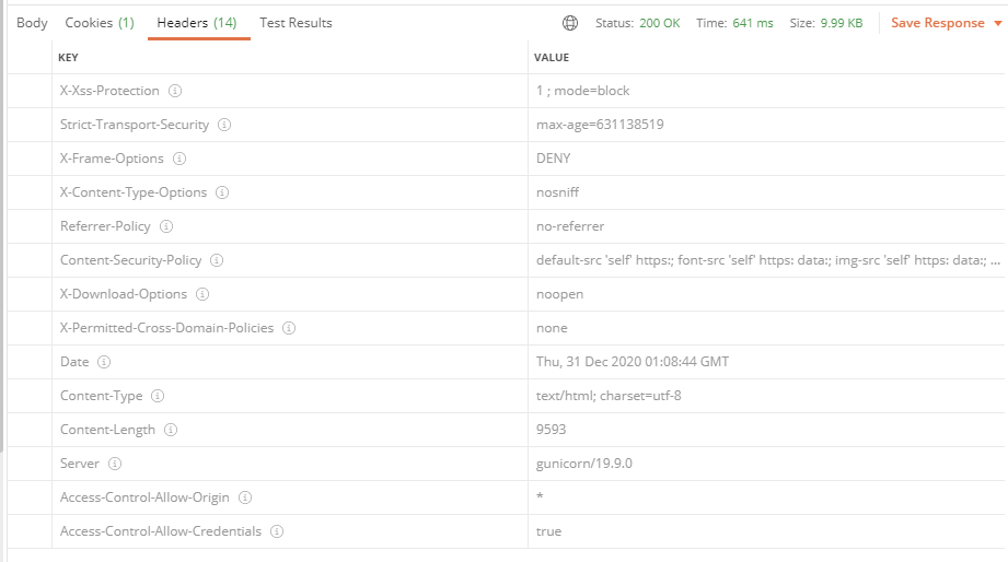 - 반면에 secureHeaders를 기본 Properties로 적용시키게 되면 아래와 같이 나오게 된다.