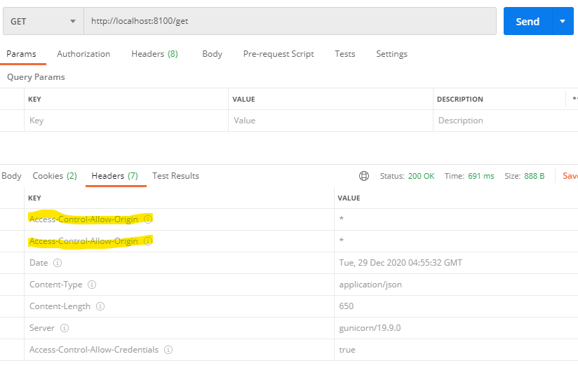 - dedupeResponseHeader 주석을 하고 호출하게 되면 아래와 같이 나옴.