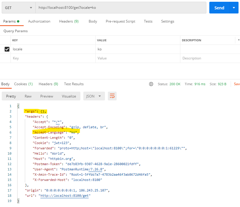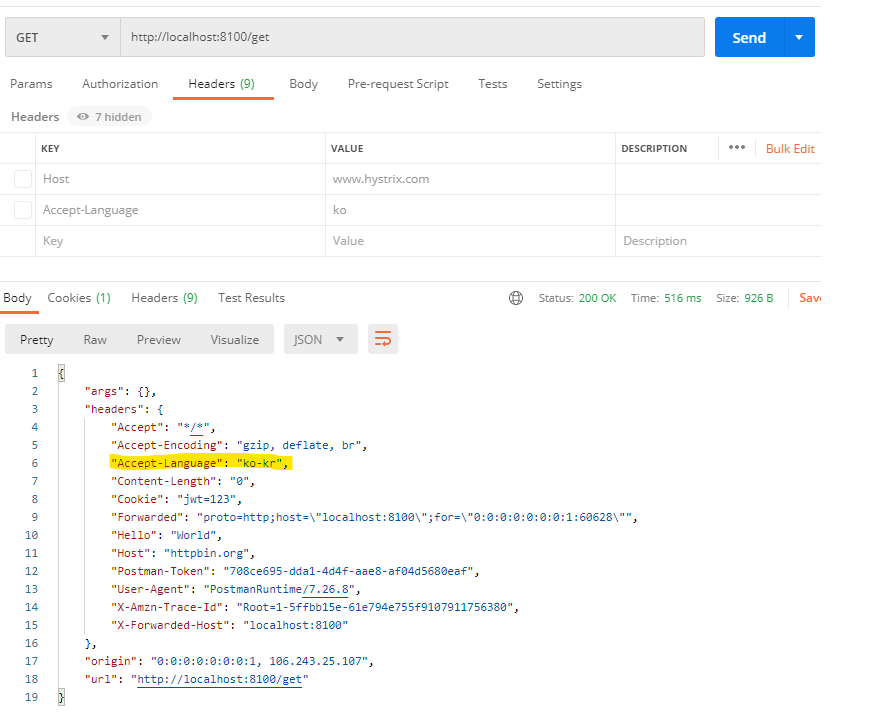반면 Accept-Language를 빼고 호출하게 되면 다음과 같이 결과가 나온다. 기본 값으로 설정한 java.util.Locale의 Locale.KOREA 값인 ko-kr로 변경된다.