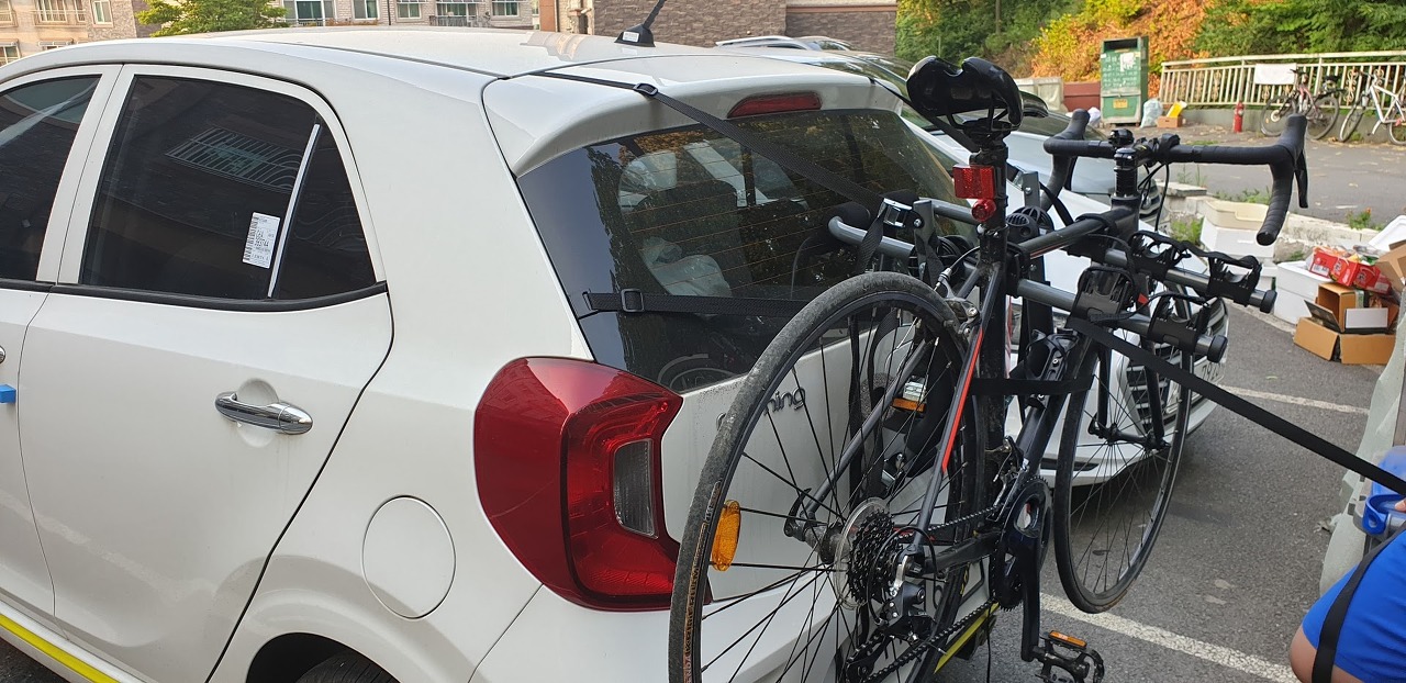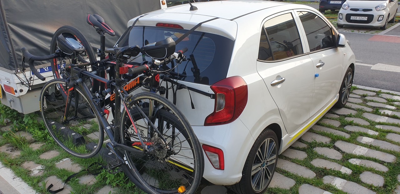 일단 테스트로 아들의 자전거를 달아보고 완료. 작은 경차에도 이상없이 장착 되는 것 확인...