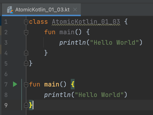 main method가 Class 밖에 있어야 아래 처럼 실행 버튼이 생긴다.