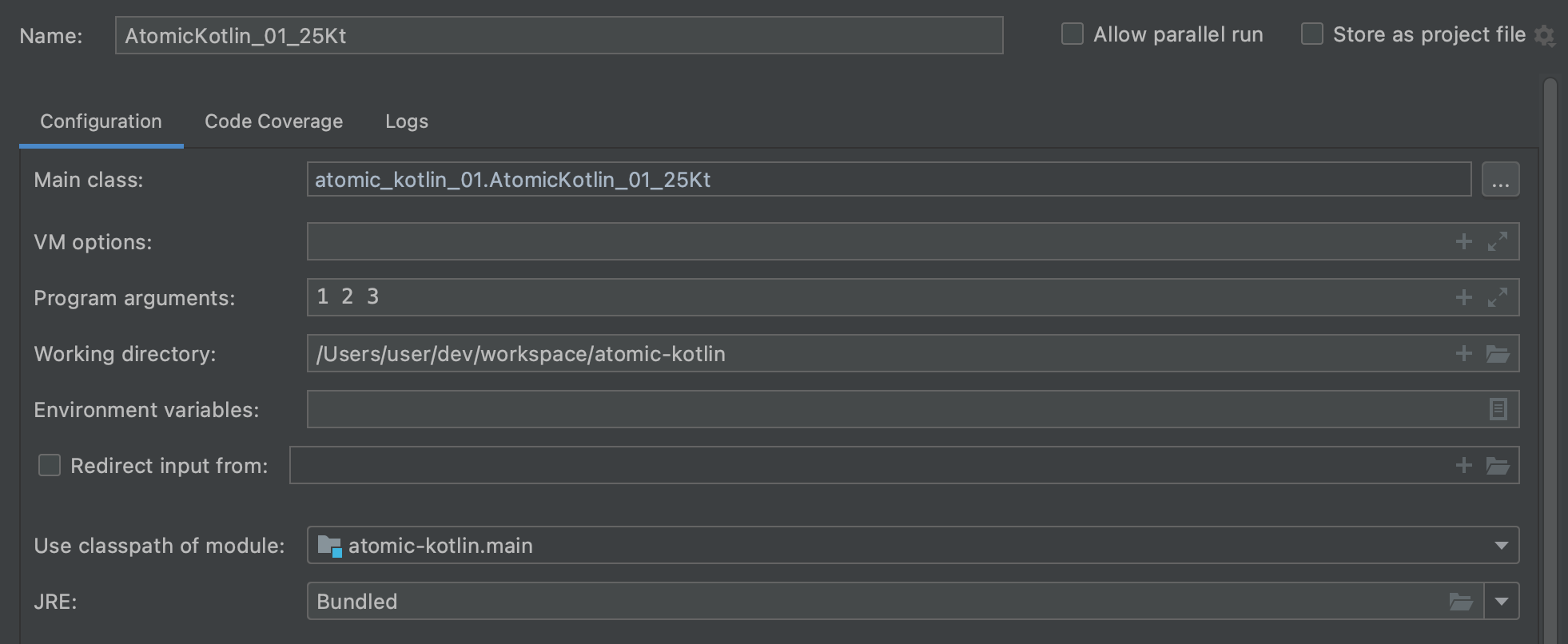 "Edit Configurations..."를 누르게 되면 다음과 같이 나오게 되는데, 여기서 program arguments에 한 칸씩 띄어서 입력하면 된다.