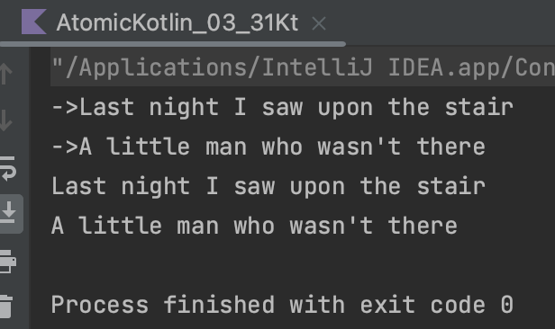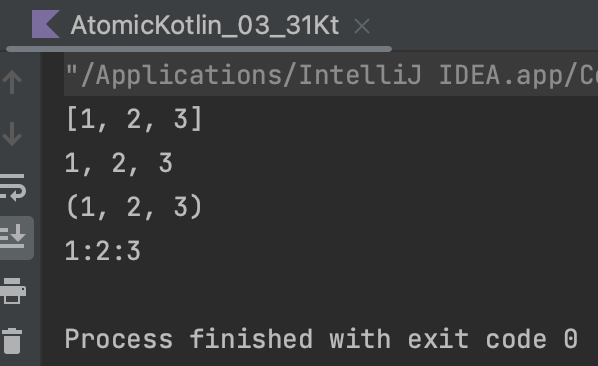 따라서 아래와 같이 만들어 놓은 list를 사용해서 joinToString을 실행해 보면 예상한 대로 결과가 나오는 것을 볼 수 있다.