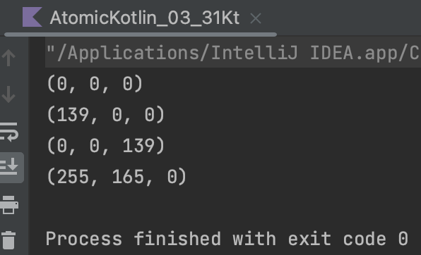 fun color (red: Int, green: Int, blue: Int) = "($red, $green, $blue)"