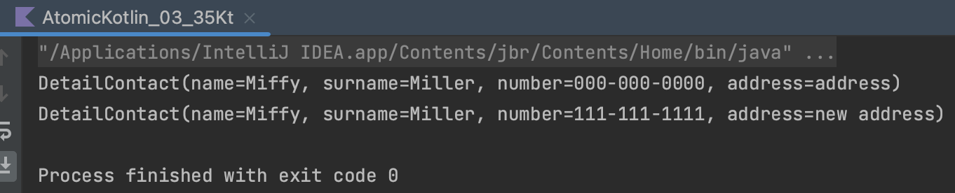 contact 인스턴스를 만들고 contact.copy를 이용해서 newContact를 만들게 되면 생성자에 명시한 number, address만 바뀌어서 인스턴스가 생성되게 된다.