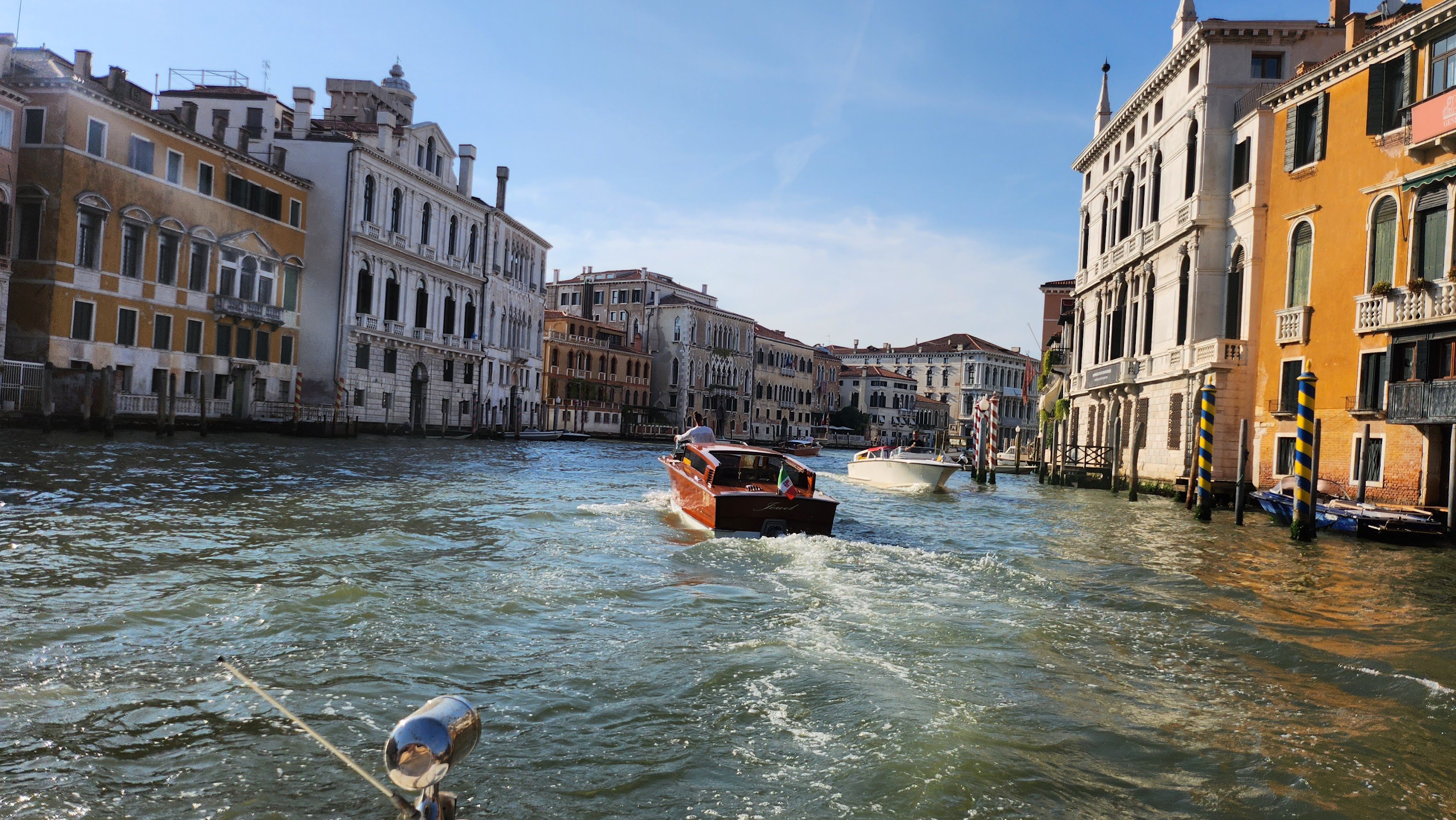 수상 택시는 생긴게 제트보트처럼 생겼는데, 생긴 것과는 달리 천천히 다녔습니다. 관광의 목적을 위해서 그런 것도 있지만 배들이 일으키는 물결이 베네치아의 전체적인 구조에 악영향을 미친다고 하는 것 같았습니다.